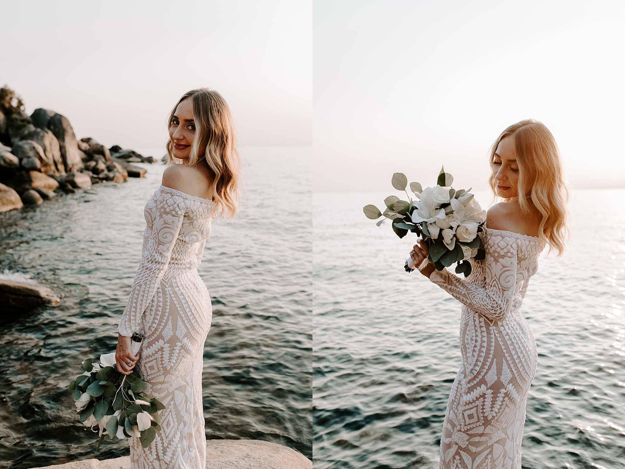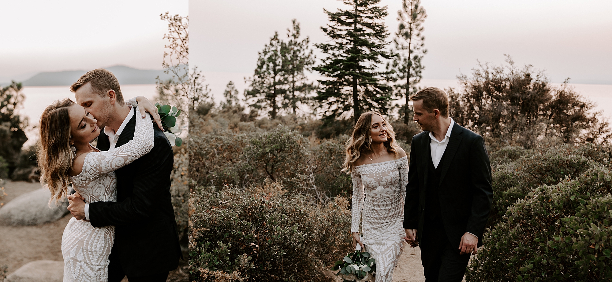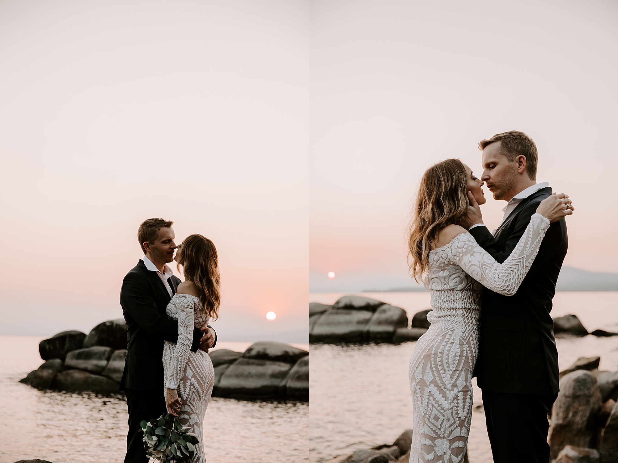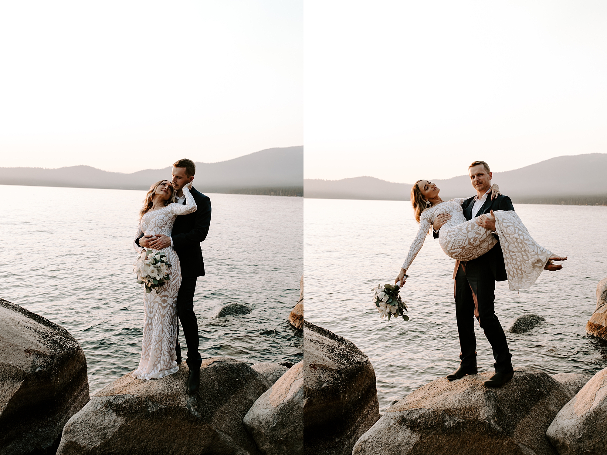This North Lake Tahoe elopement felt like a fairytale! Elena and Oleg opted for a quiet ceremony North Lake Tahoe, and we all enjoyed being on “Tahoe Time” for the weekend. We began by the shore with a short and sweet ceremony with just the two of them. They wanted a true elopement-style ceremony, and this rocky beach was the perfect location for them to focus on each other.