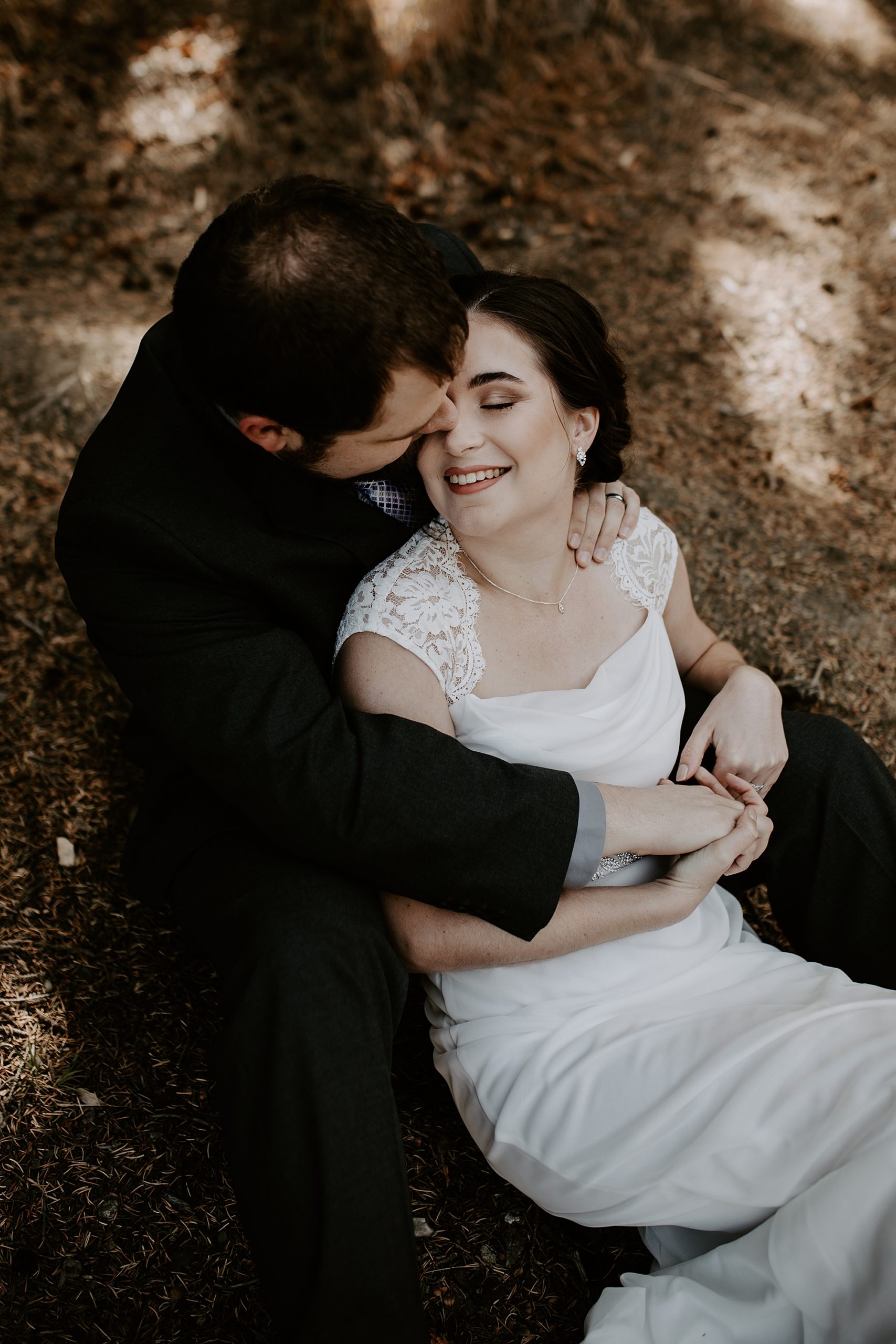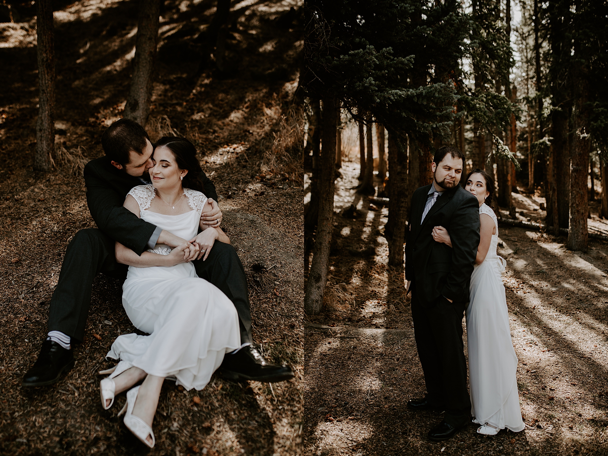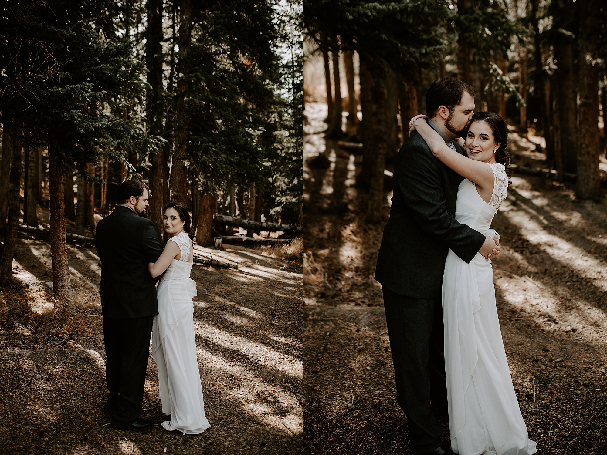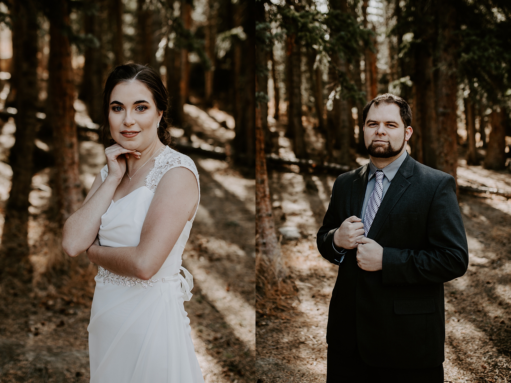 When Kayla and Dalton contacted me about their Colorado elopement, I couldn’t wait to begin scouting out ceremony locations for them. They wanted a true elopement – just the two of them and the breathtaking mountainside for the ceremony. After some hiking and research, I stumbled upon Guanella Pass, Colorado near Mount Bierstadt. This unique pass straddles a steep divide, so it has some diverse scenery. When I came upon this small lake, I knew the lighting would be stunning for photographs. Plus, a thick forest surrounds the lake so that we could get those romantic woodsy shots.