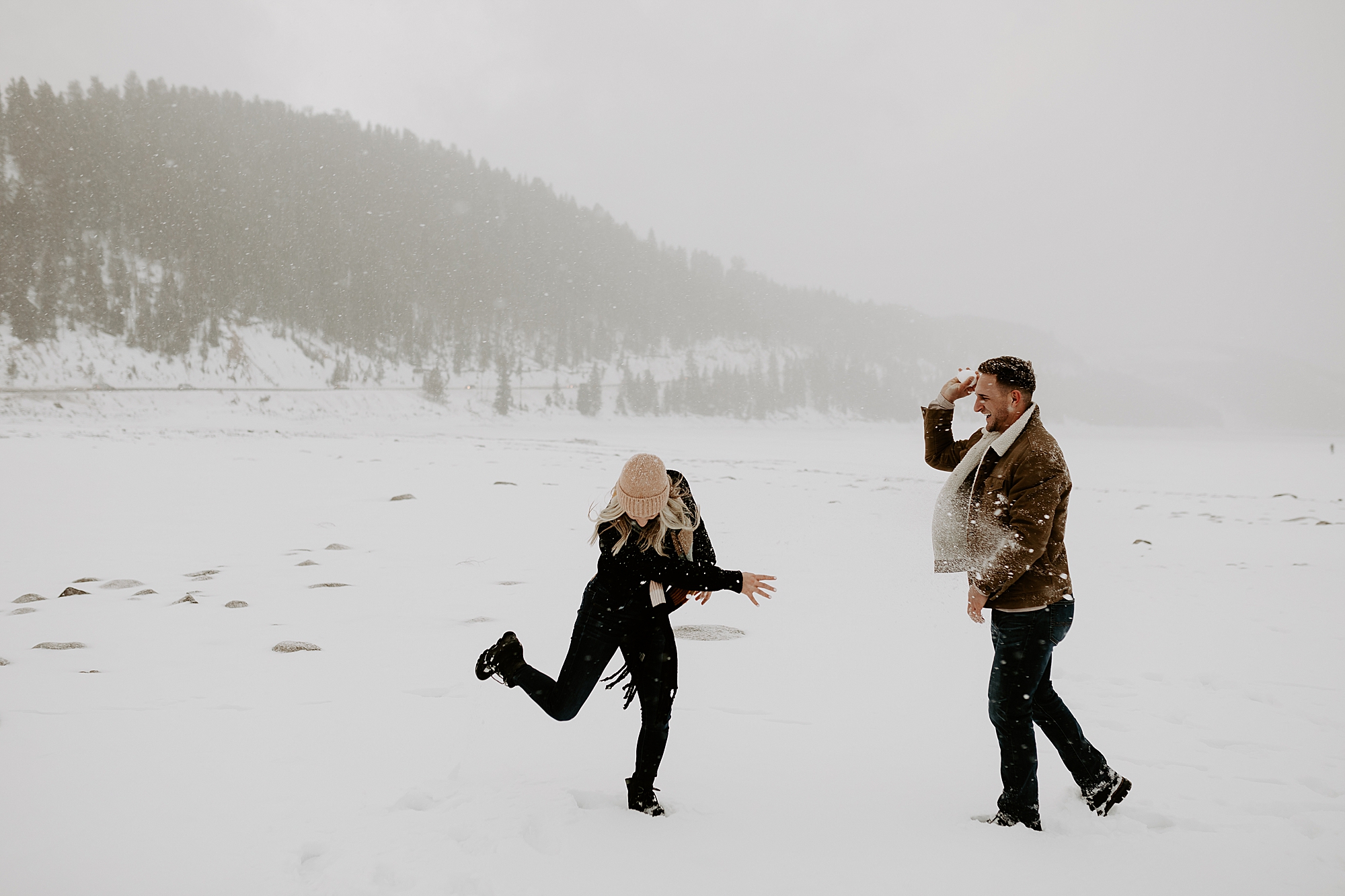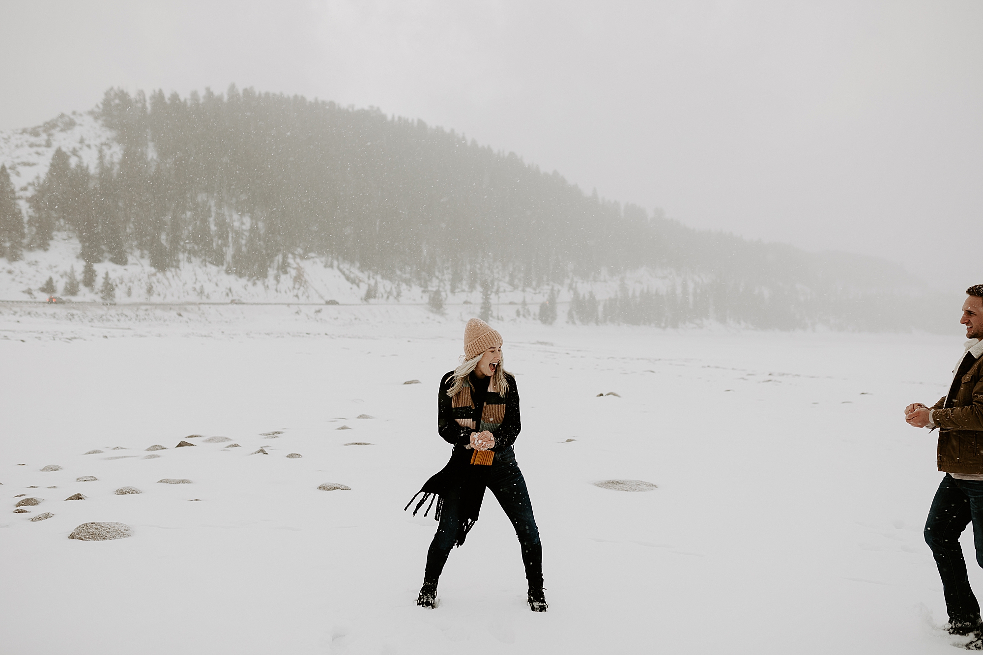 Some of my favorite photos were of the two of them playing together like kids – two free spirits just enjoying life together. He trekked through the snow with Bree riding piggyback, her colorful scarf trailing behind! And what’s a snowy session without a snowball fight for the grand finale?