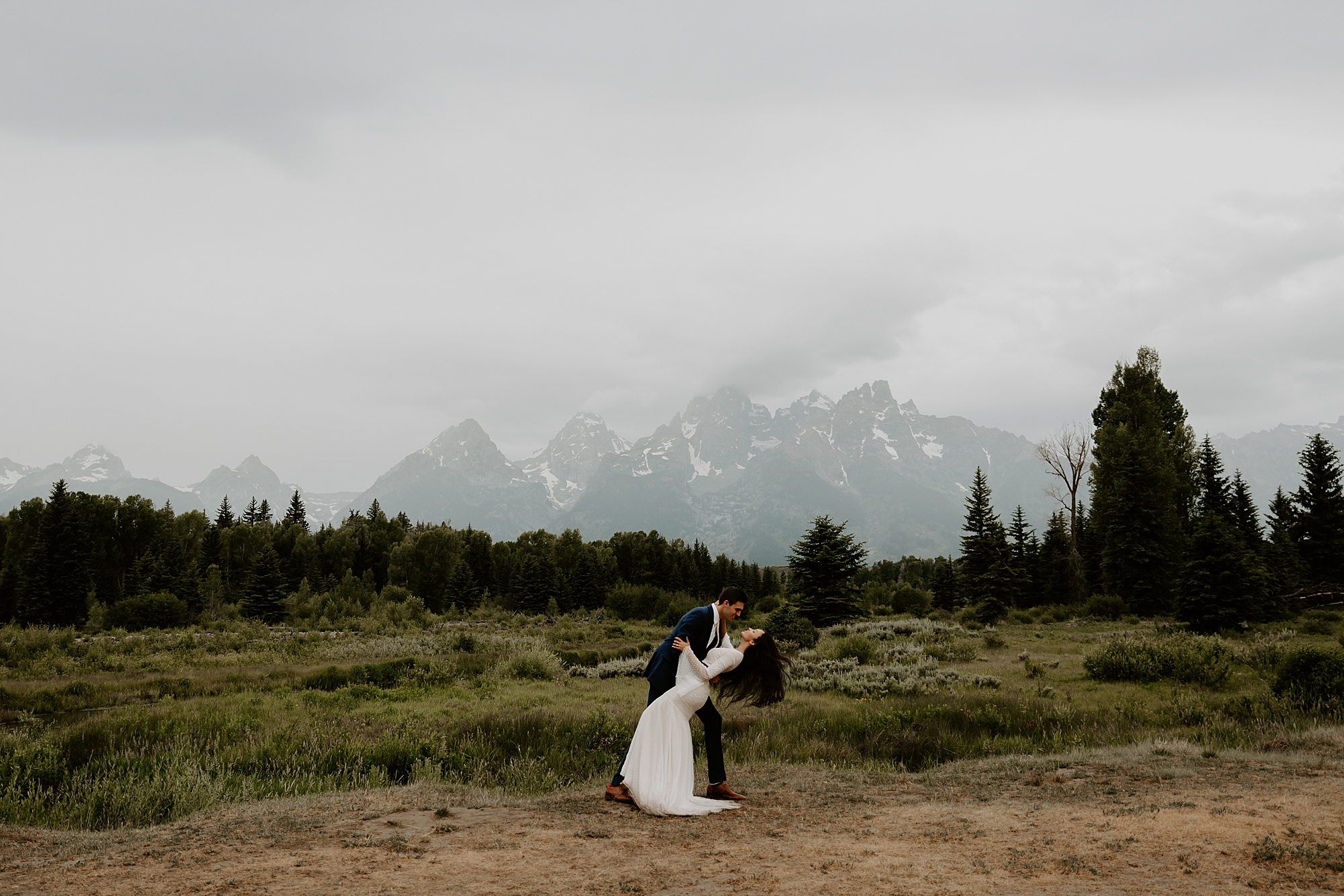 I have to admit, I’m completely enamored by these photos. But before you think I’m just puffing myself up, Mother Nature really worked her magic for this romantically moody shoot. That, and a ridiculously perfect couple! Sophia and Chad escaped to the Grand Tetons for an al fresco mountain wedding, and it was such a pleasure to do their couple’s portraits in Grand Teton National Park – I was in my happy place with this happy couple.