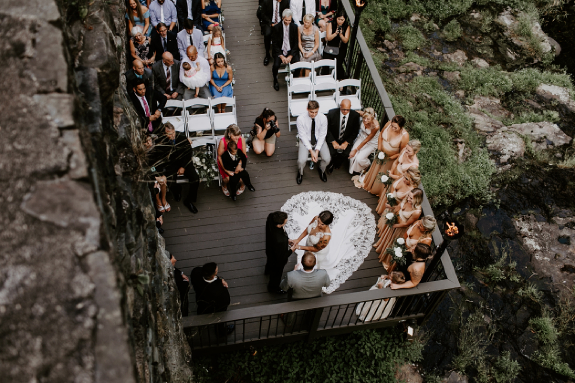 Ledges Hotel is one of my very favorite Poconos wedding venues. Although it’s a hotel, they’ve left the surroundings as natural as possible. Aptly named, it perches over a large gorge within the Poconos, which you can see looks like something from a dream!