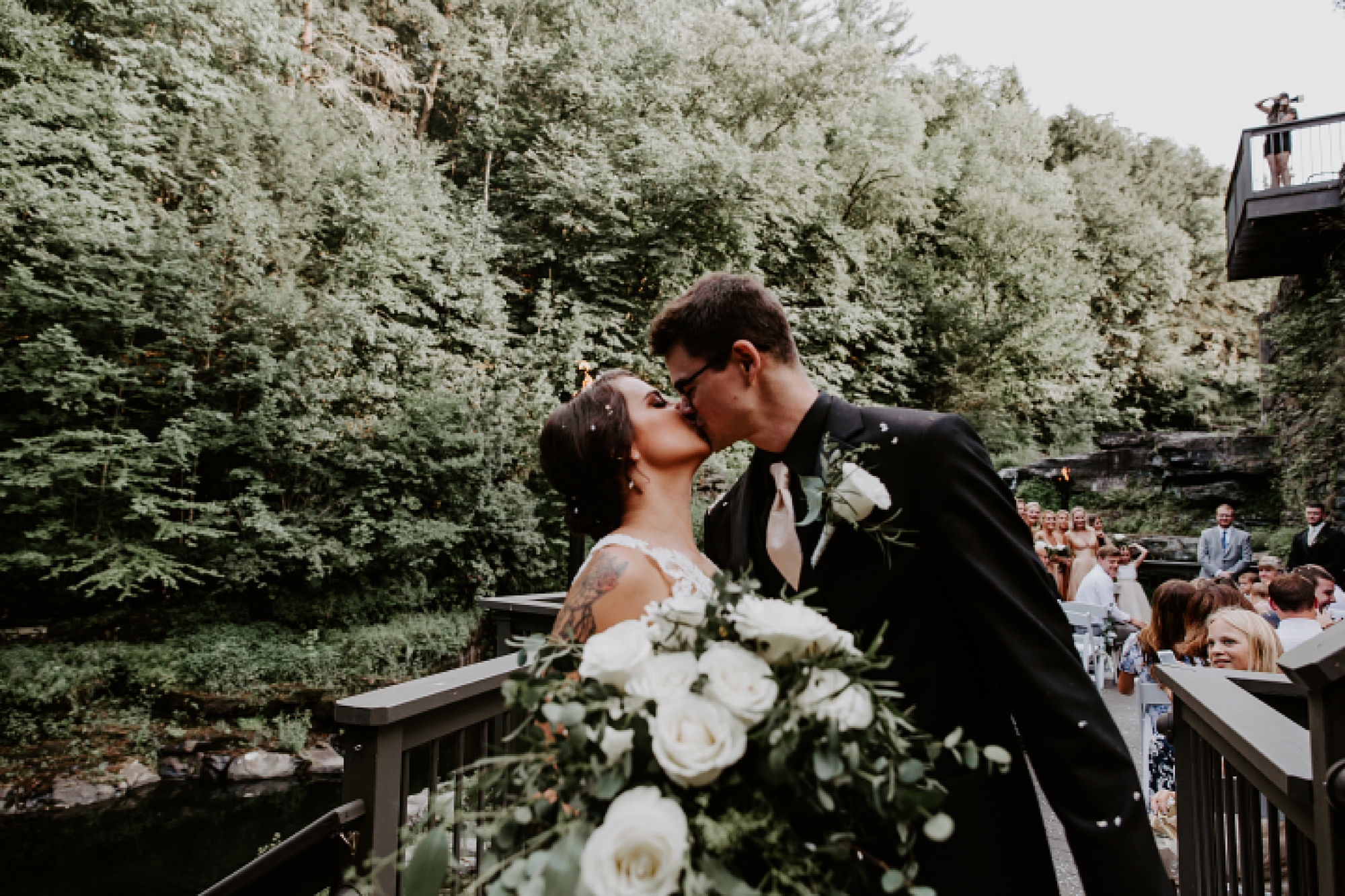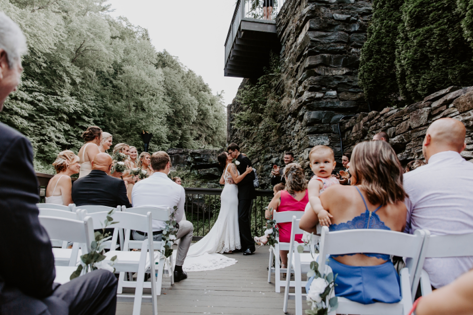 Sometimes, finding the perfect mountain elopement venue that fits your style and needs can be tricky, but Ledges Hotel is ideal for an intimate yet beautifully designed ceremony like this one. Furthermore, the hotel offers just the right amount of modern luxury without comprising their most stunning asset – this prime location perched above Wallenpaupack Creek.