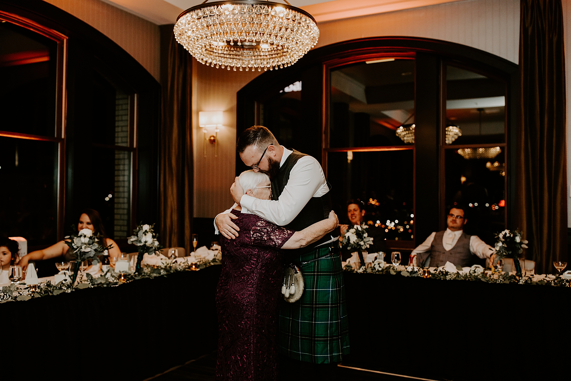 Plus, this was a winter wedding, so all of the colors and textures looked gorgeous together! I love the dark green! The groom’s traditional Scottish attire looked incredible with his full kilt and plaid ensemble, plus the fur and leather sporran. Super cool!