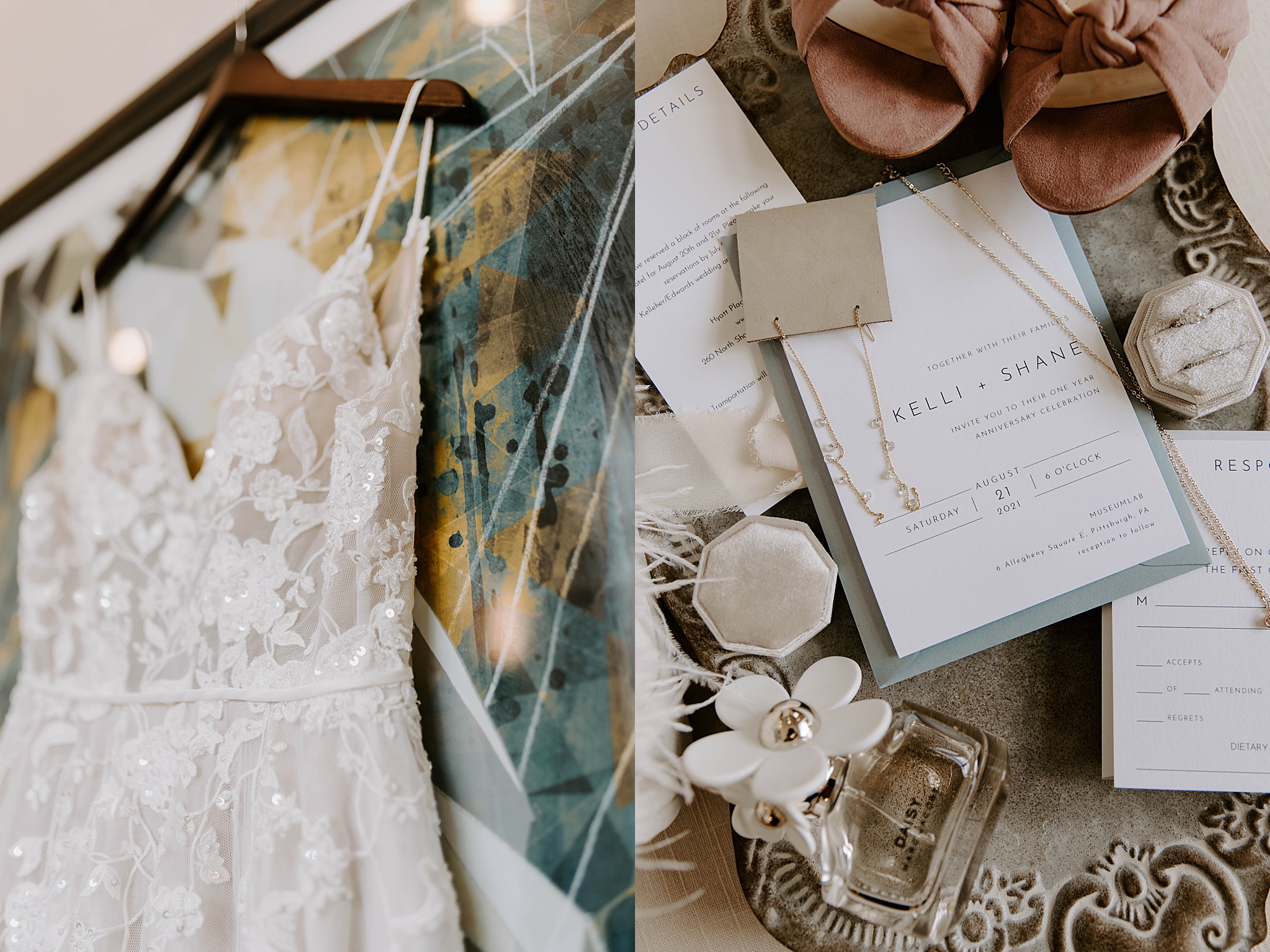 Kelli and Shane officially tied the knot last year during the pandemic with a small ceremony. However, they were finally ready to exchange personalized vows and celebrate with a big reception attended by all of their nearest and dearest. Sharing this moment with loved ones was the main focus of the event. They wanted to keep the theme simple and elegant with lots of greenery—nothing extravagant of overstated. They opted for a reception at Museum Lab in Pittsburgh. This philanthropic cutting-edge venue was absolutely perfect for their moody museum wedding!
