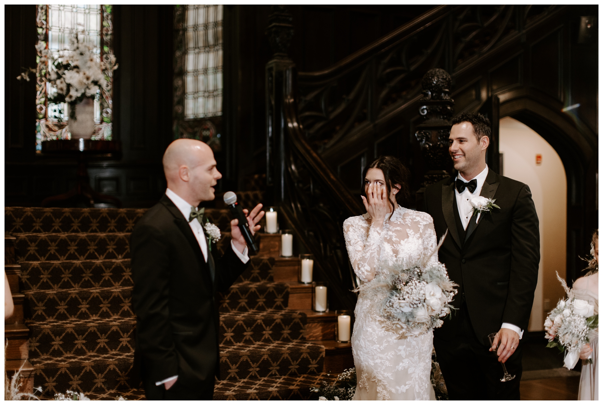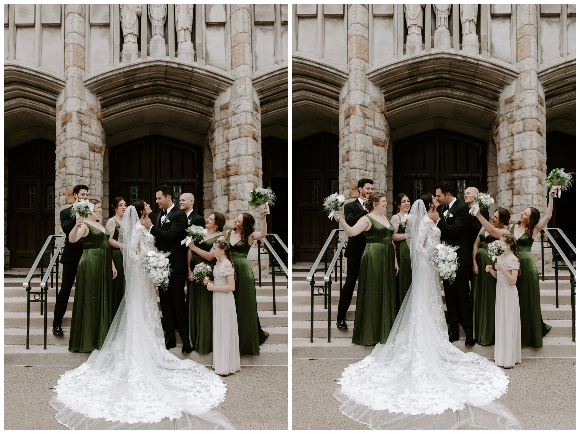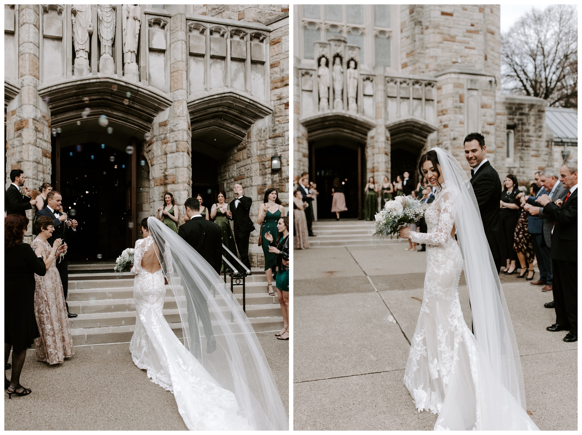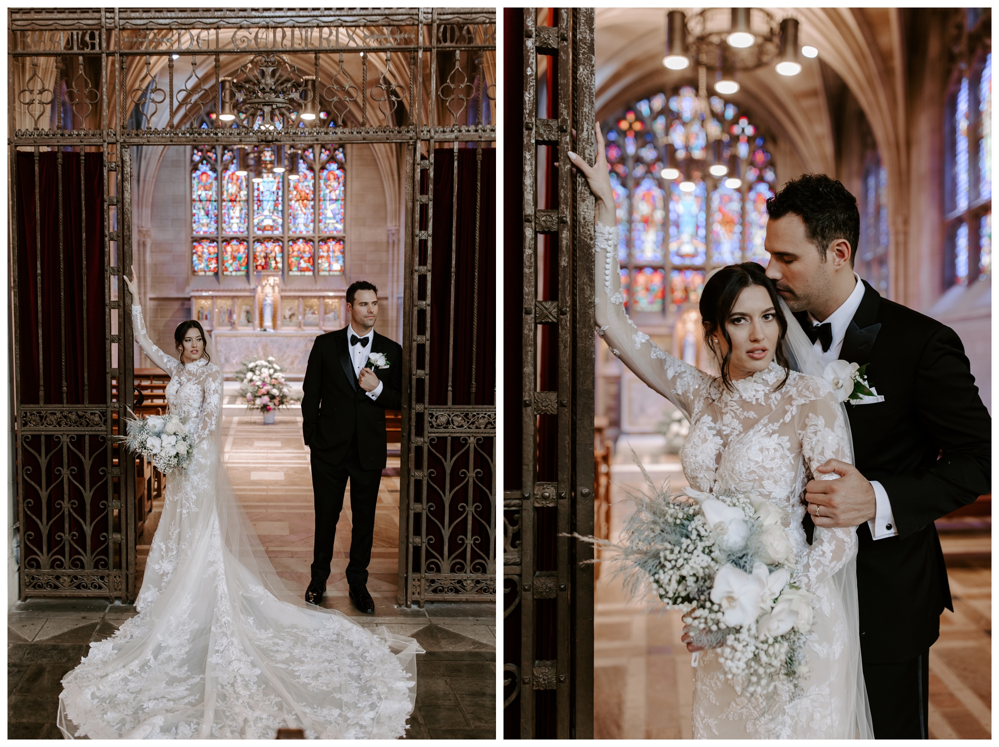 It’s rare to find historic venues with such amazing light. The Mansions on Fifth feature walls of windows in every room, allowing plenty of natural light to brighten the space. We took tons of photos inside the church and the reception venue, and both offered gorgeous lighting via oversized windows and ornate stained glass.