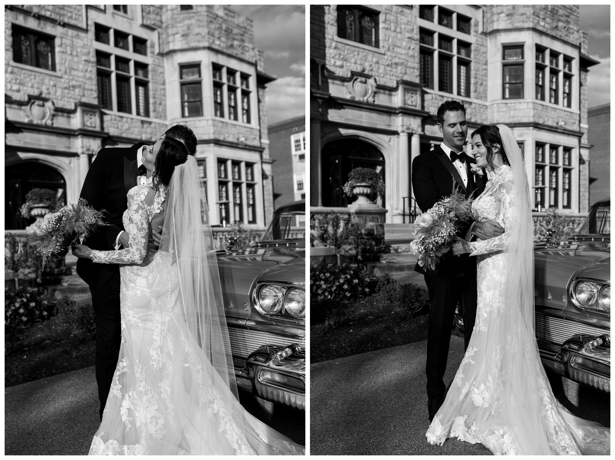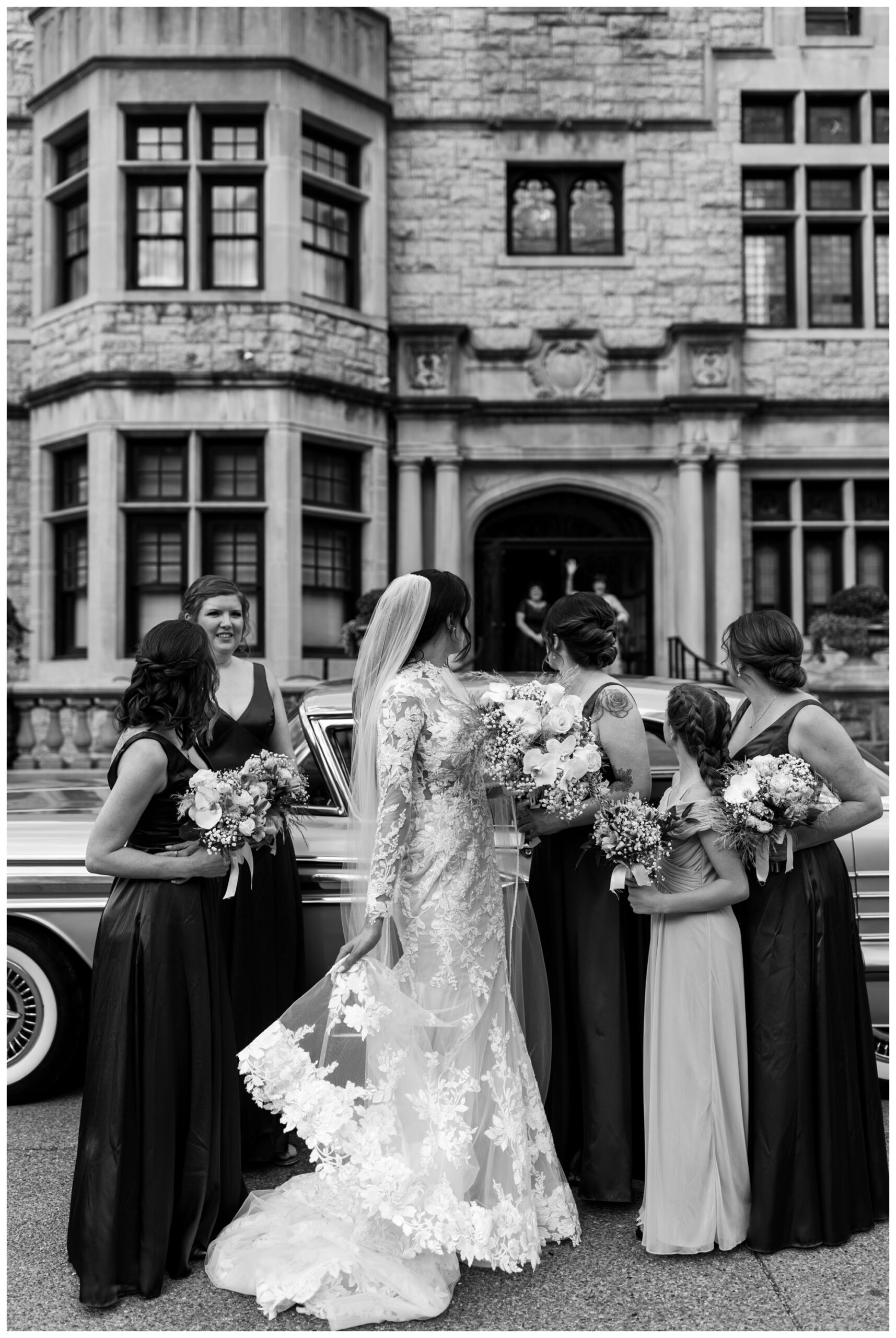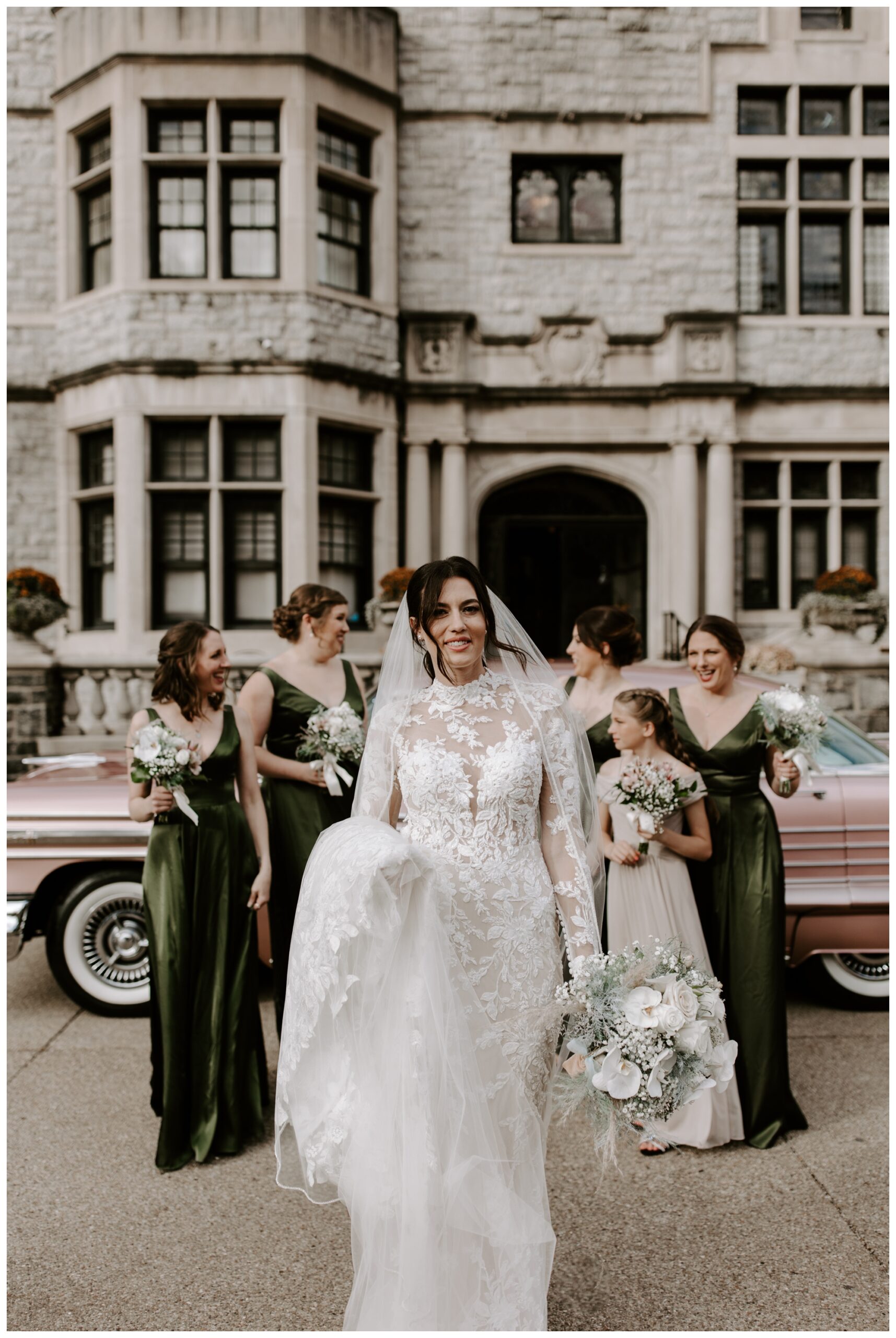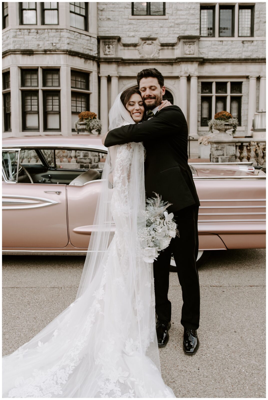 Jennifer and Tommy’s high-fashion vibe brought this romantic, Victorian-style wedding venue to life! Every detail fell into place beautifully, from the bride’s stunning white-lace gown and overflowing floral arrangements to the groom’s sharp tux and the immaculate vintage car. The couple wanted a romantic, editorial style, and that’s exactly what they got. These two were equally kind, trusting, and laid back, which made executing these images even easier. They knew what they wanted and trusted me to deliver.