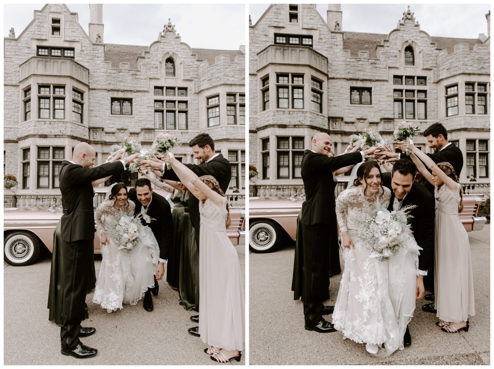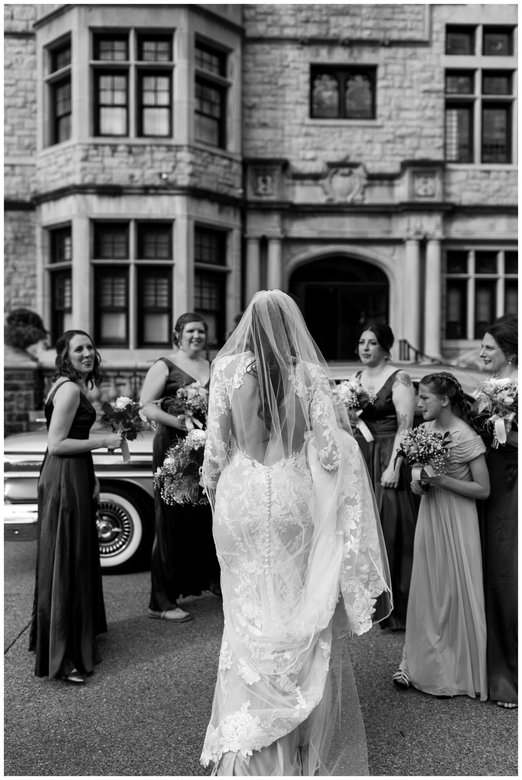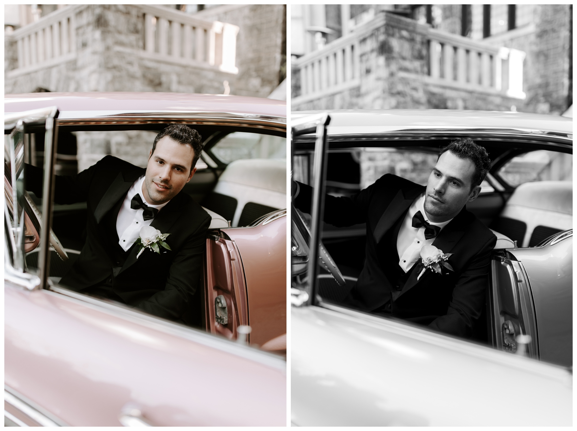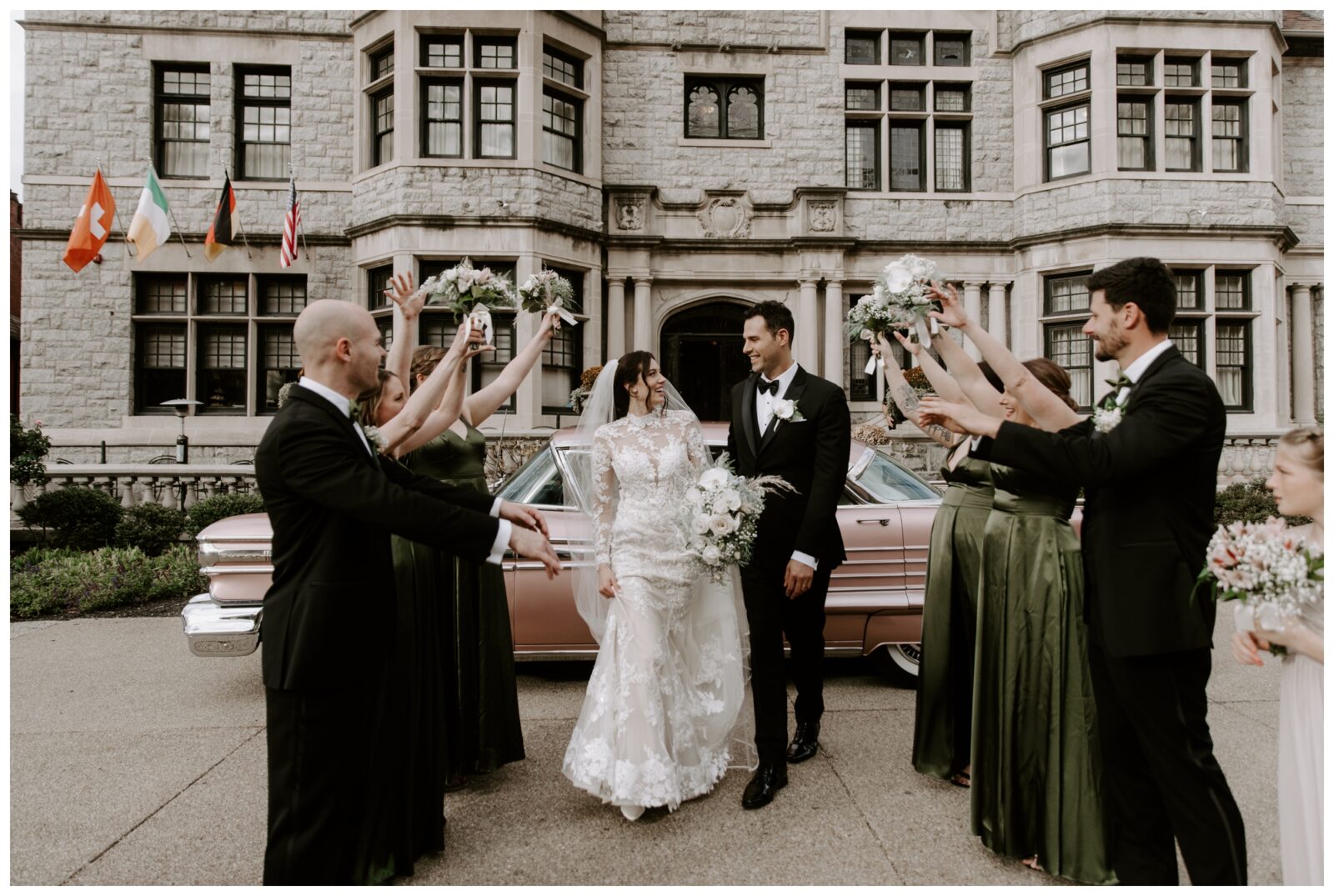 Jennifer and Tommy’s high-fashion vibe brought this romantic, Victorian-style wedding venue to life! Every detail fell into place beautifully, from the bride’s stunning white-lace gown and overflowing floral arrangements to the groom’s sharp tux and the immaculate vintage car. The couple wanted a romantic, editorial style, and that’s exactly what they got. These two were equally kind, trusting, and laid back, which made executing these images even easier. They knew what they wanted and trusted me to deliver.