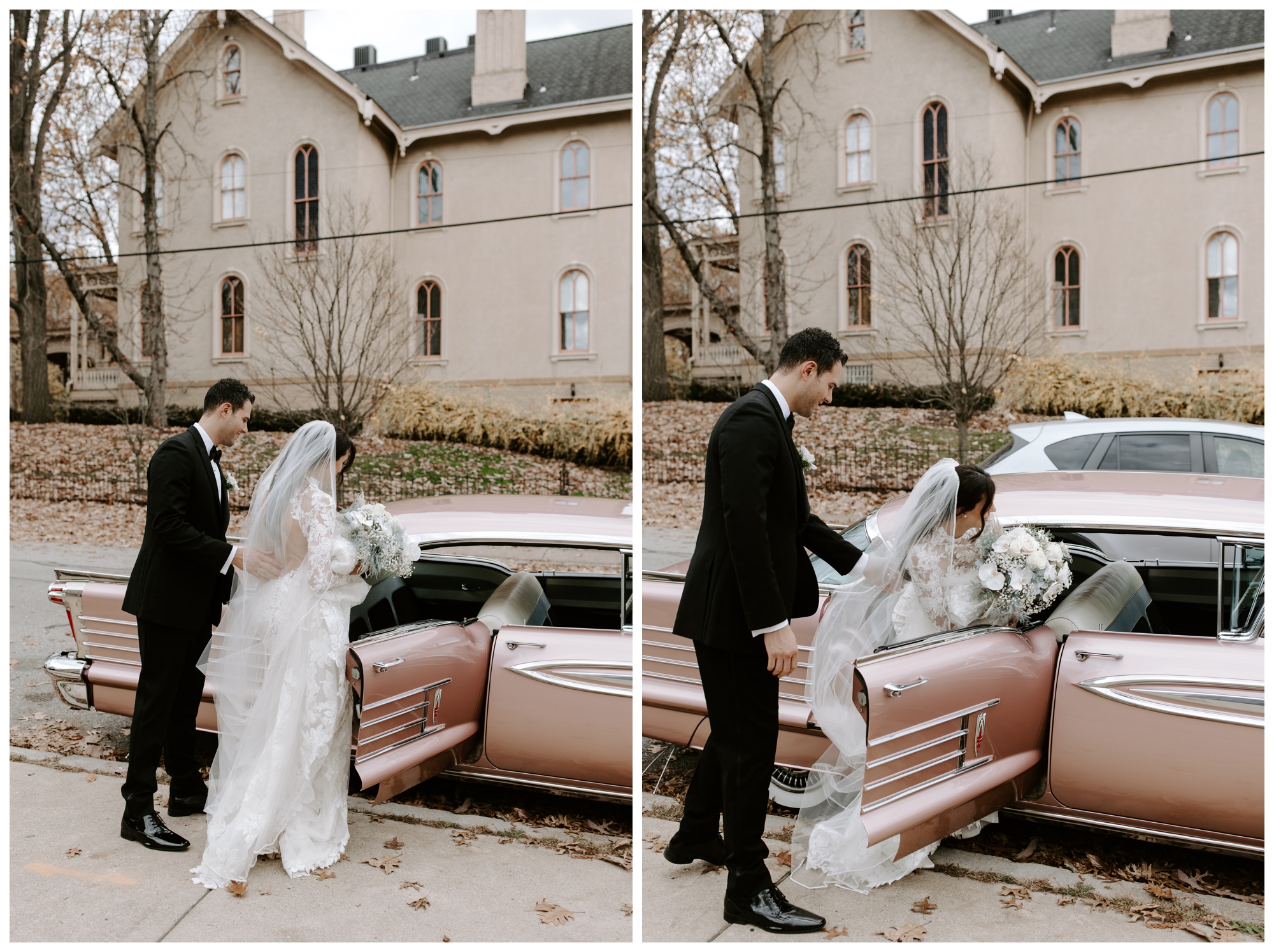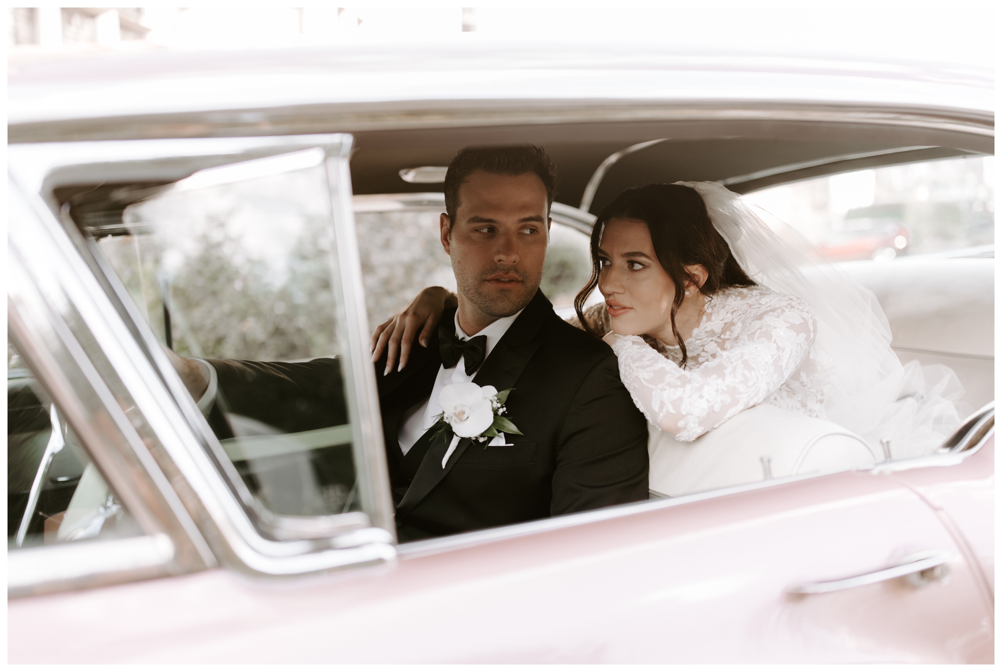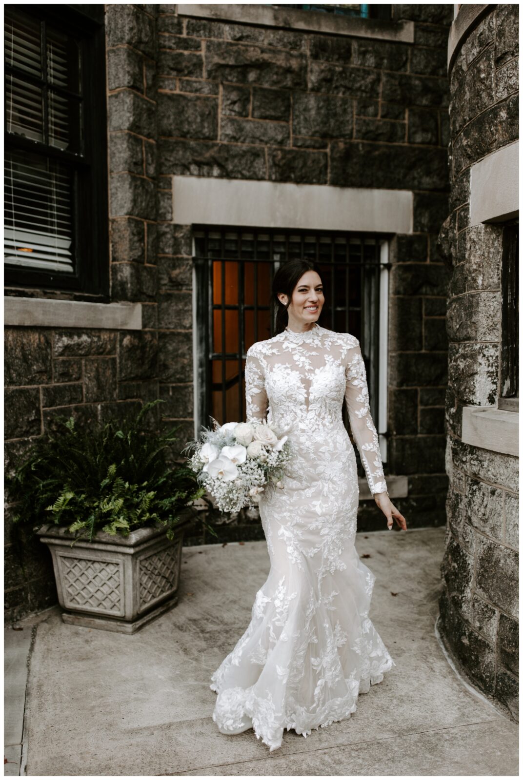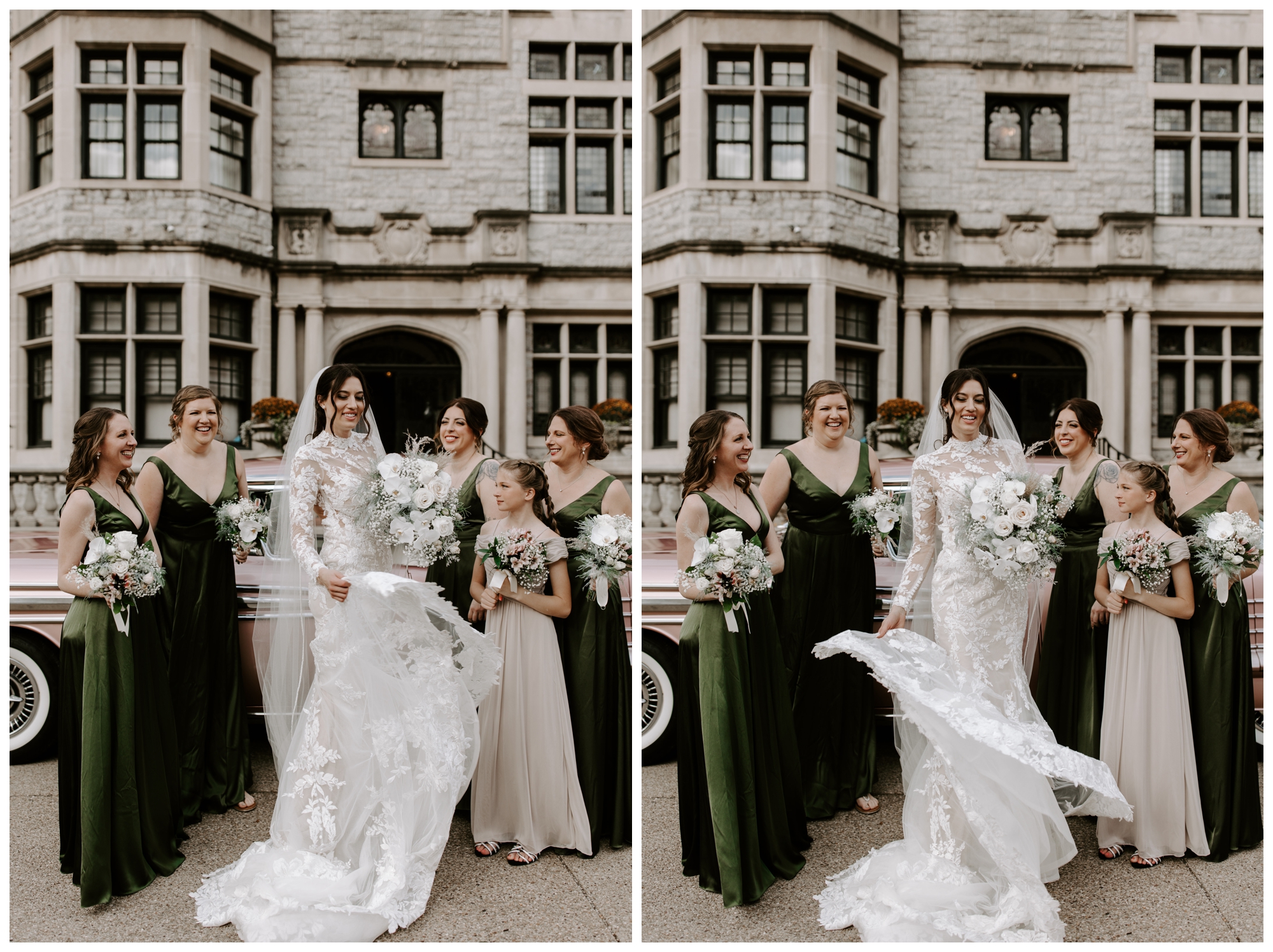Jennifer and Tommy’s high-fashion vibe brought this romantic, Victorian-style wedding venue to life! Every detail fell into place beautifully, from the bride’s stunning white-lace gown and overflowing floral arrangements to the groom’s sharp tux and the immaculate vintage car. The couple wanted a romantic, editorial style, and that’s exactly what they got. These two were equally kind, trusting, and laid back, which made executing these images even easier. They knew what they wanted and trusted me to deliver.