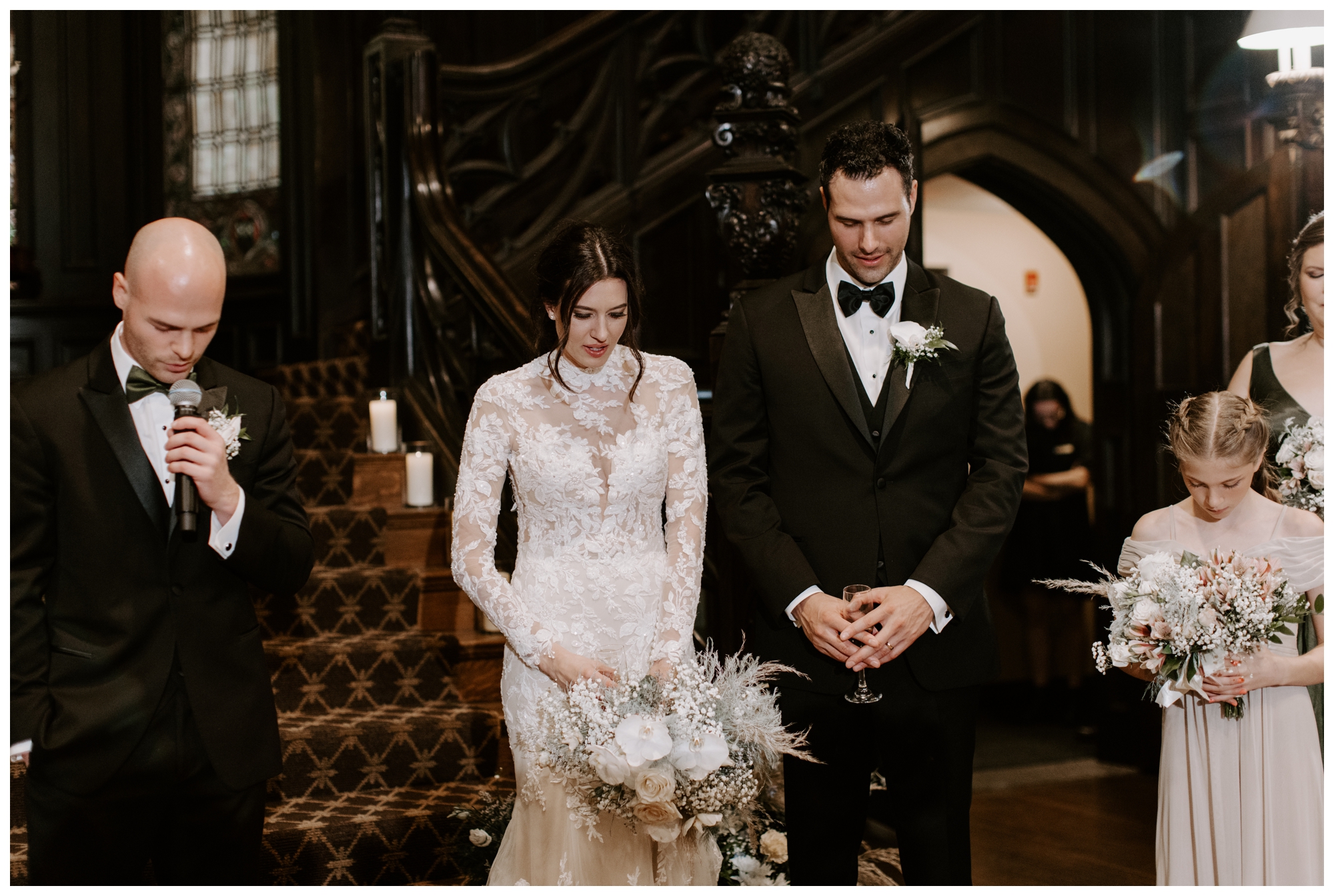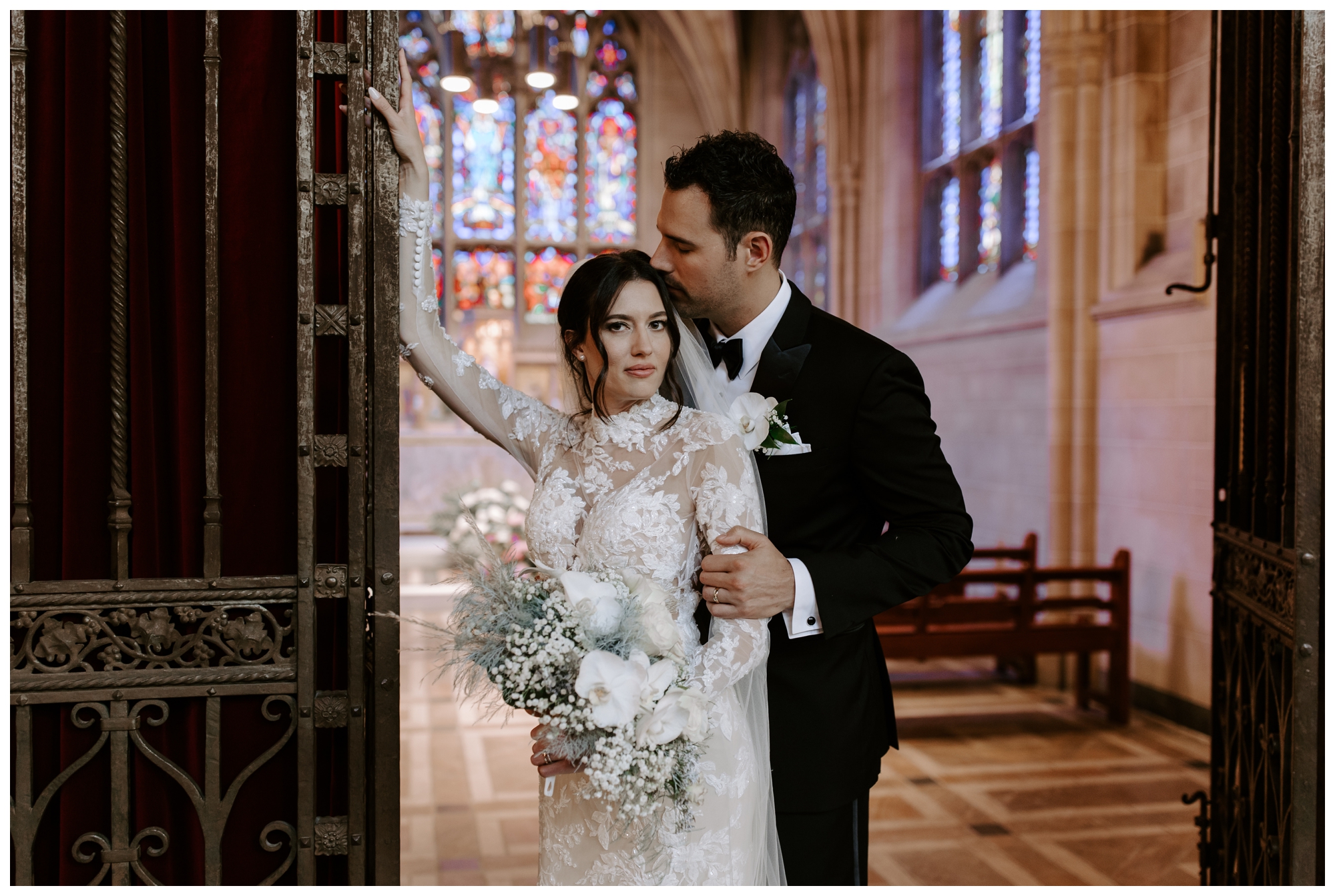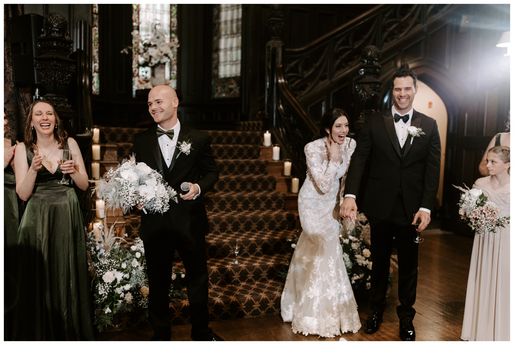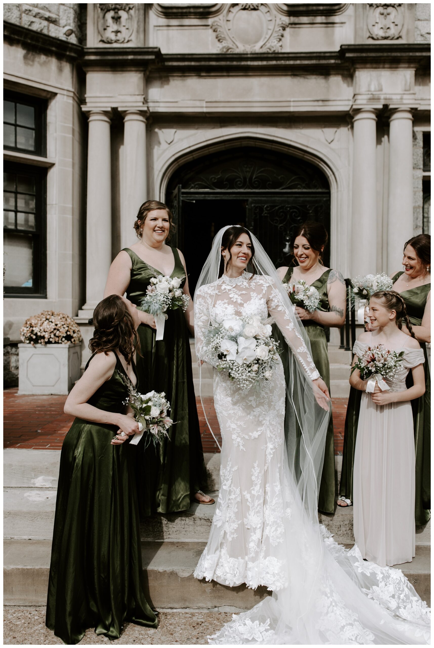 Jennifer and Tommy’s high-fashion vibe brought this romantic, Victorian-style wedding venue to life! Every detail fell into place beautifully, from the bride’s stunning white-lace gown and overflowing floral arrangements to the groom’s sharp tux and the immaculate vintage car. The couple wanted a romantic, editorial style, and that’s exactly what they got. These two were equally kind, trusting, and laid back, which made executing these images even easier. They knew what they wanted and trusted me to deliver.