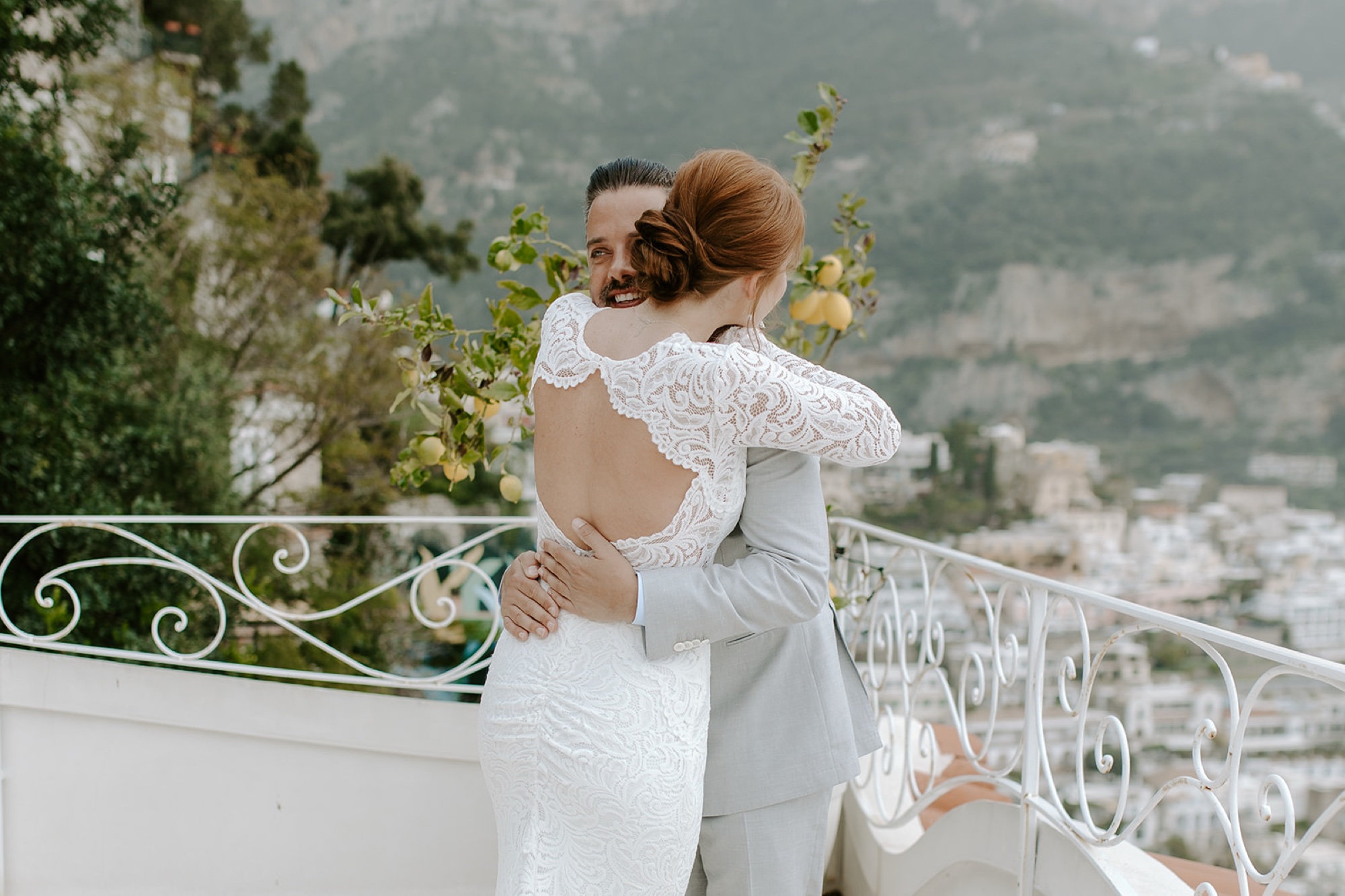 On the wedding day itself, Positano seemed to hold its breath with us. The setting reflected a perfect balance of serenity and joyful anticipation. As I photographed Chelsea preparing in her suite overlooking the sea, I paused, noticing how the morning light traced delicate patterns across her lace gown. Her white bouquet subtly highlighted her natural beauty. I couldn’t help but smile at how organically their vision had come to life.
