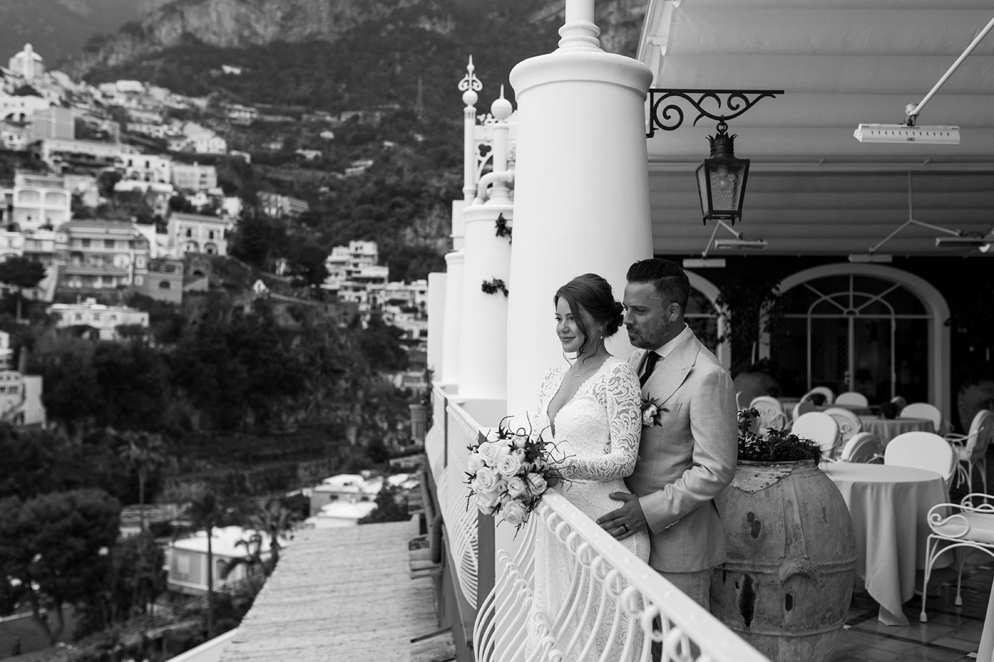 As a full-service Italy wedding planner and photographer, I know the power of cohesive storytelling and intentional experiences. As you eagerly look forward to your wedding day, I encourage couples to dream beyond their vows. One of the best parts of a destination wedding in Italy is that you don’t have to follow a traditional wedding timeline. You can stay and chat a while on the terrace with an aperol spritz in hand or wander through the streets, stopping in for a peek at a boutique or an espresso break. Do you want to dine on fresh seafood and handmade pasta paired with famous Italian wines, or maybe dance beneath string lights as the sky deepens over the sea and the cliffs twinkle with lights? Positano, with its old-world charm and gentle sea breezes, begs you to pause and breathe deeply. These are nostalgic moments in the making.