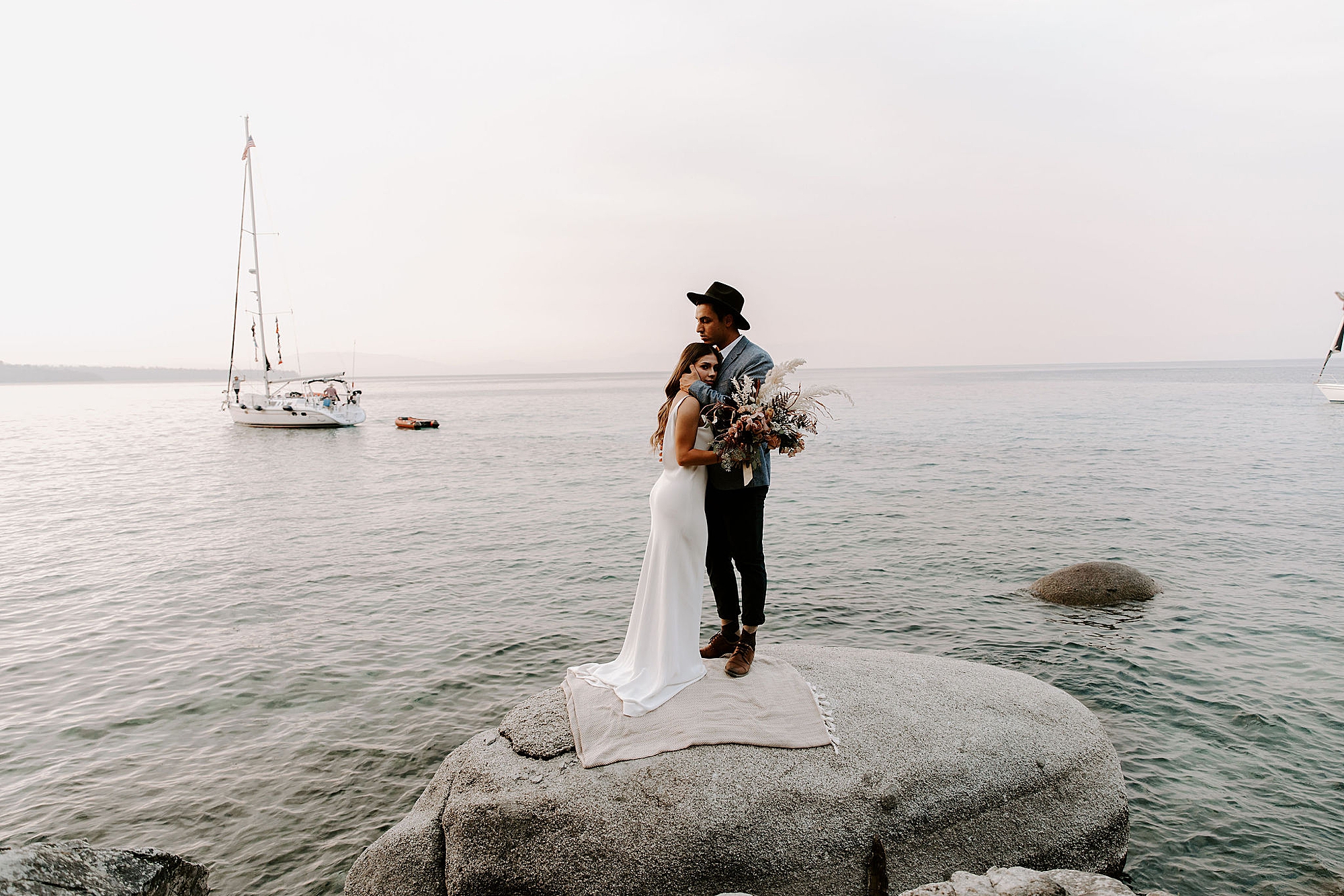 If you could go anywhere to exchange “I do’s” with the one you love, where would it be? For this gorgeous couple, it was Lake Tahoe. But rather than a fancy resort or crowded chapel, they wanted an intimate experience with the glistening lake behind them for the first kiss. I couldn’t be more in love with this Lake Tahoe sunset elopement.